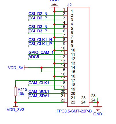 你好,目前我们这里没有 OV5647 或 GC2093 模组的详细对应管脚原理图。我们的开发板是依据 Sensor 模组厂家所定义的接口进行匹配设计,将上述截图中的相应信号传输至 OV5647 或 GC2093。如果你需要开发相应型号的Sensor模组,建议联系对应Sensor芯片厂商获取详细的参考资料。