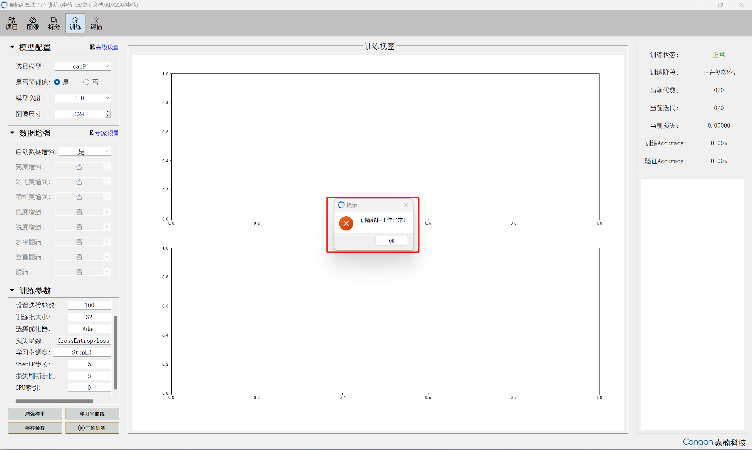 自带的项目是可以正常训练的,log报错:2024-11-28 15:57:18,700: INFO maincontroller.py 4746: [Errno 2] No such file or directory: 'D:\桌面文档\AI\K230\Chinese Medicine\Chinese Medicine\baihe\b'