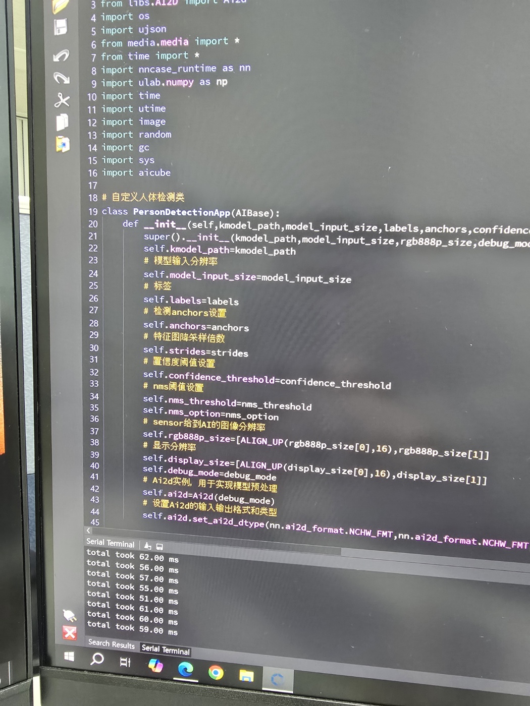 As you can see in Serial terminal window,"total took xx.00 ms " is updating when running. But after few seconds, it stop for few secons and don't update message. It repeat run and stop.
