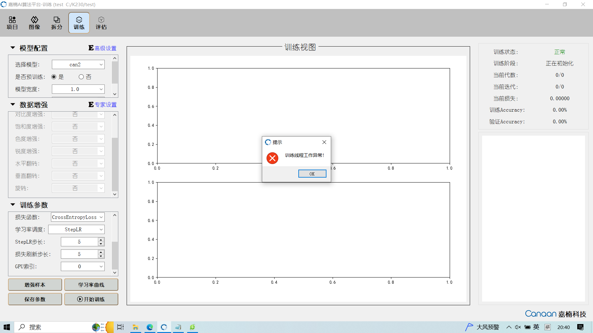 使用例程中的图像数据集做分类训练,在训练这一步,出现错误提示。