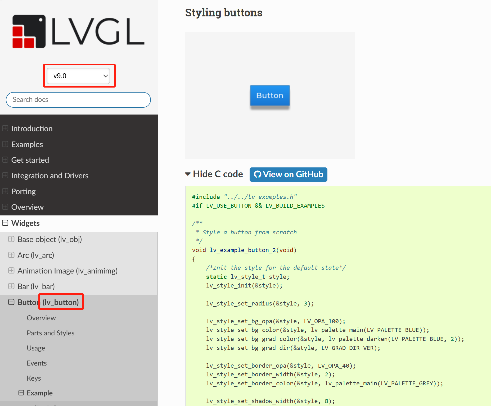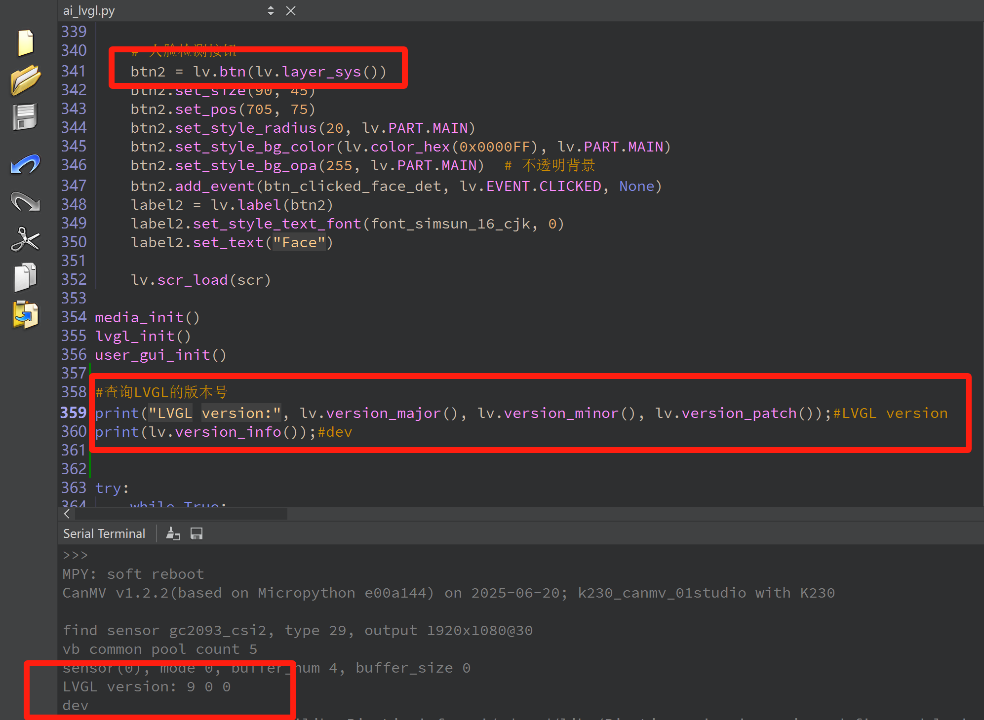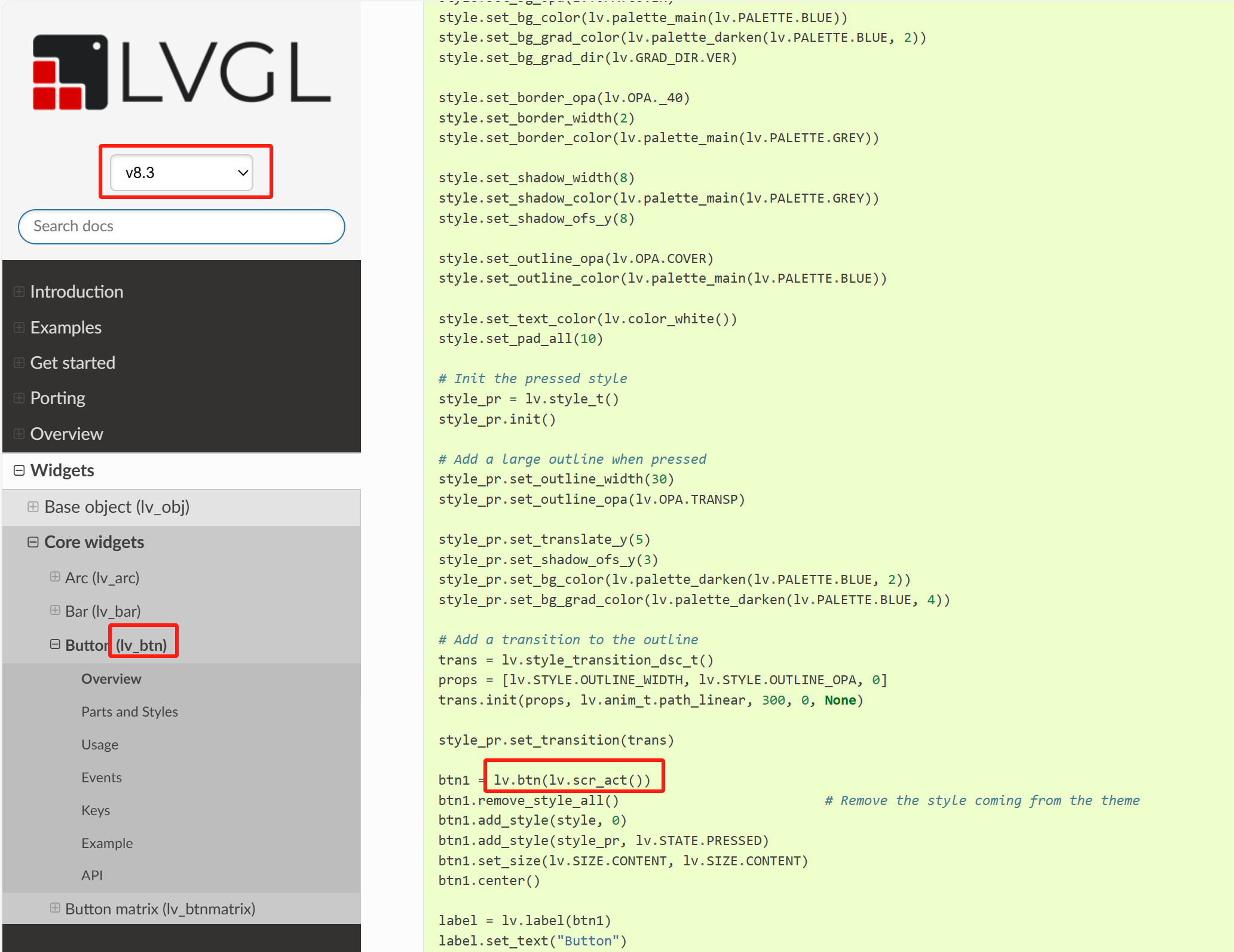使用查询版本命令后,显示还是9.0.0 dev,但是根据LVGL官方手册显示,示例程序中还是8.4以前版本的命名规则,所以,06月20日镜像里支持的LVGL倒底是哪个版本的呢?