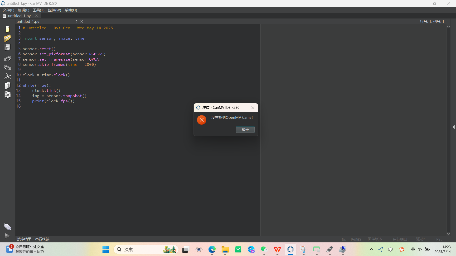 期待看到串口连接成功,显示画面,能够识别颜色和物体
