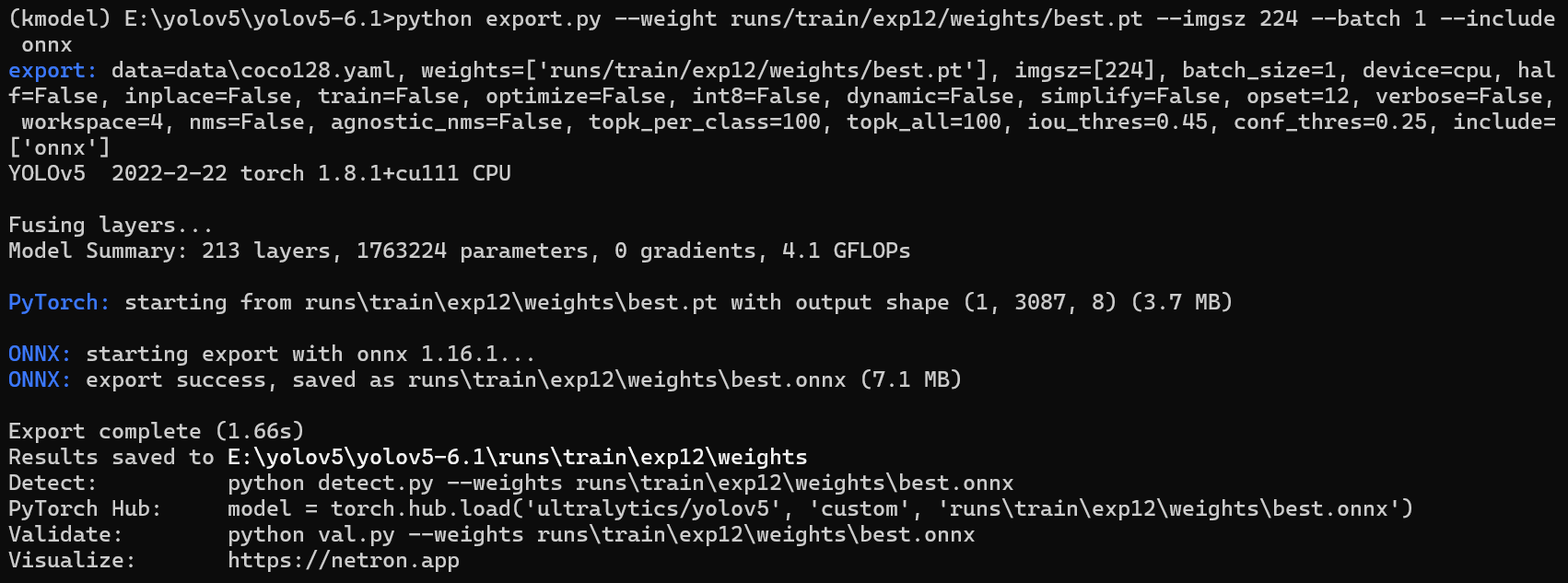 python export.py --weight runs/train/exp12/weights/best.pt --imgsz 224 --batch 1 --include onnx