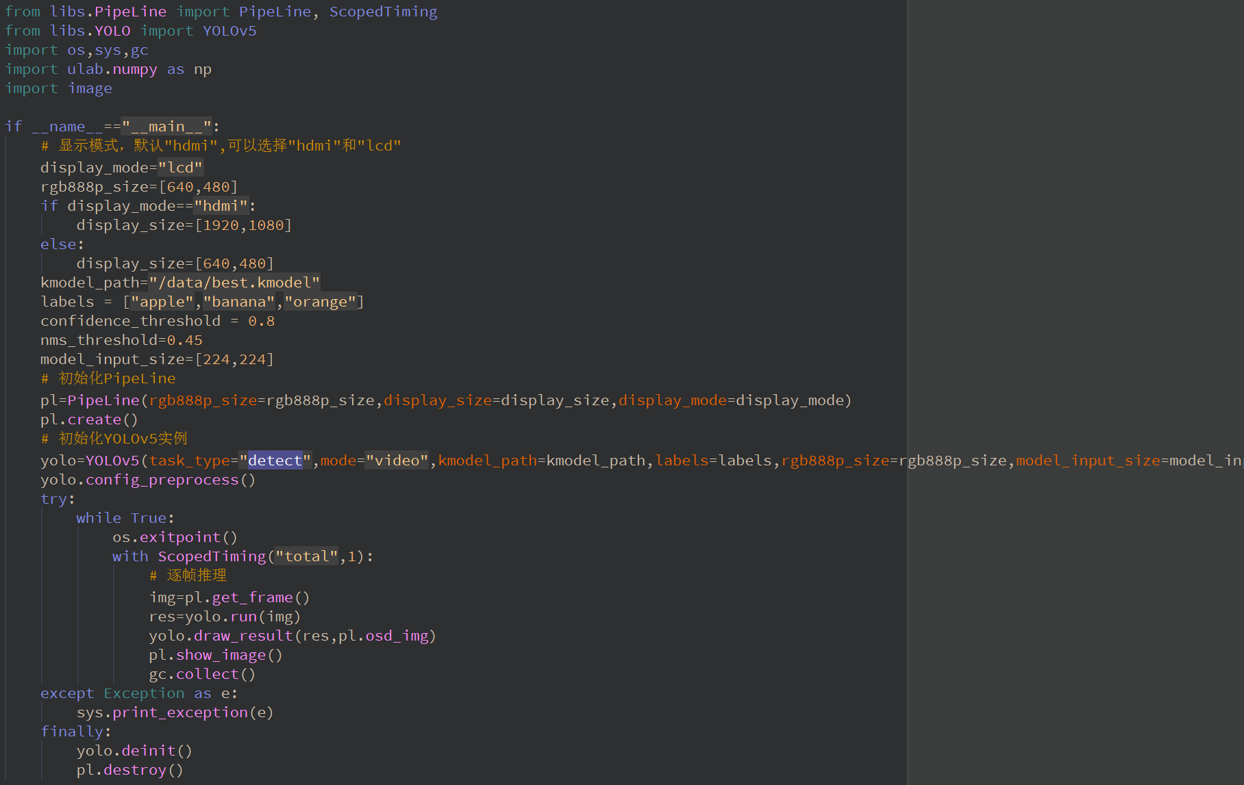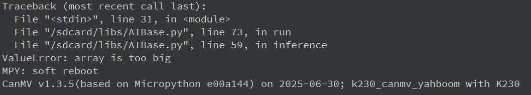 在Windows使用本地部署的yolo5跑出模型转换后得到kmodel模型,然后部署在K230上的时候IDE出现报错ValueError:array is too big!