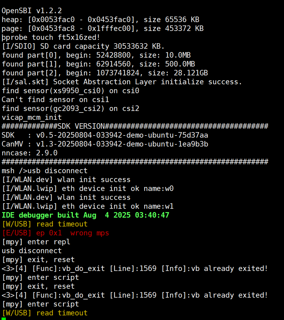 軟件:CanMV-K230 自己编译,之后选择上xs9950驱动