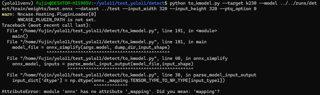 只要使用python to_kmodel.py --target k230 --model ../../runs/detect/train/weights/best.onnx --dataset ../test --input_width 320 --input_height 320 --ptq_option 0命令就会出现上述问题