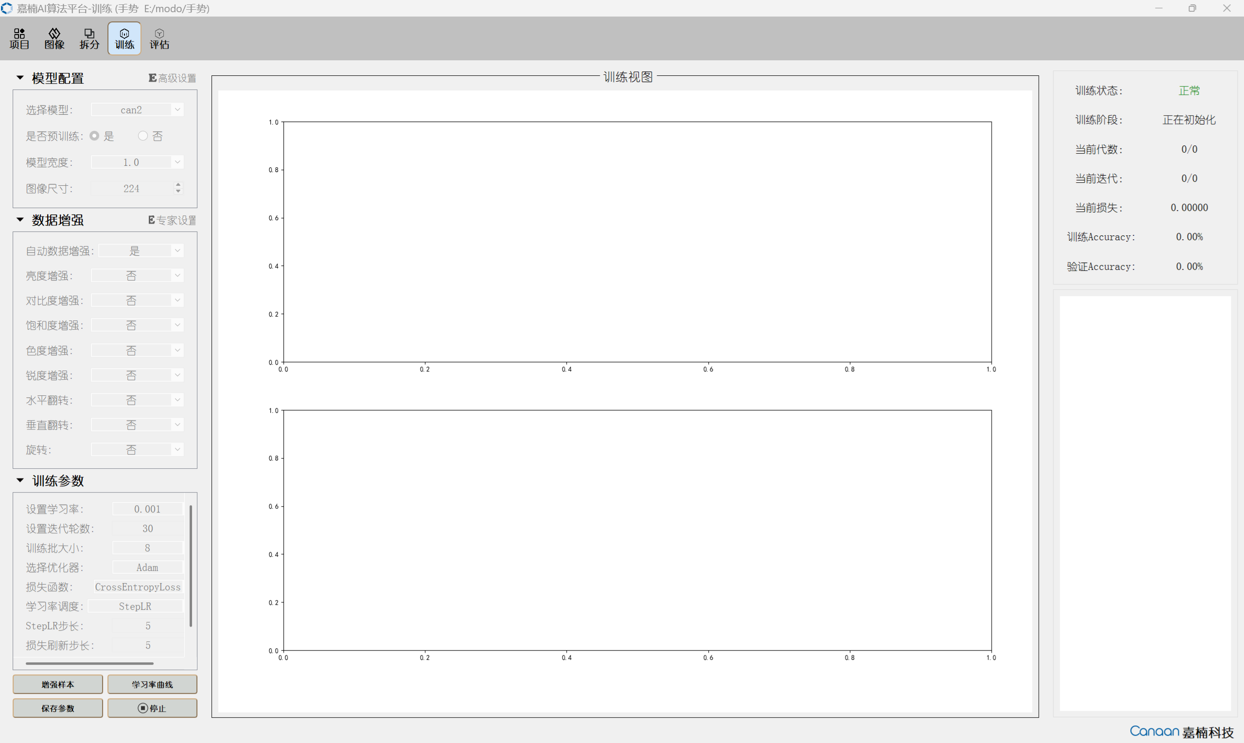 所有前置软件都安装好了,训练用的图片也是分类好的,在训练阶段用嘉楠算法平台训练AI 模型,一直卡在 训练阶段 显示 正在初始化 (然后就没反应,一直卡着不动)