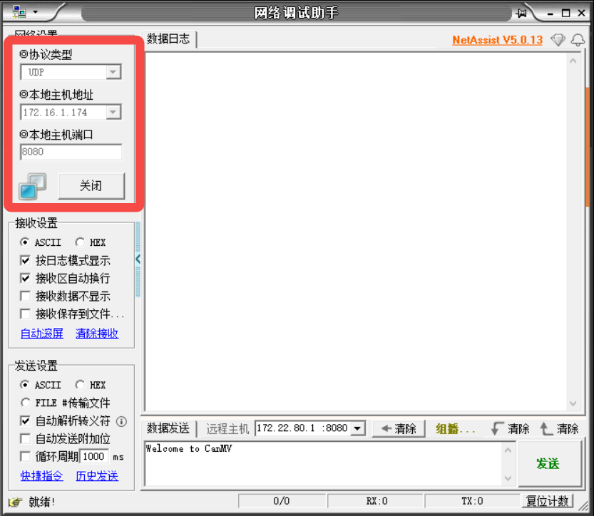 使用 NetAssist 网络调试助手建立 UDP 连接: